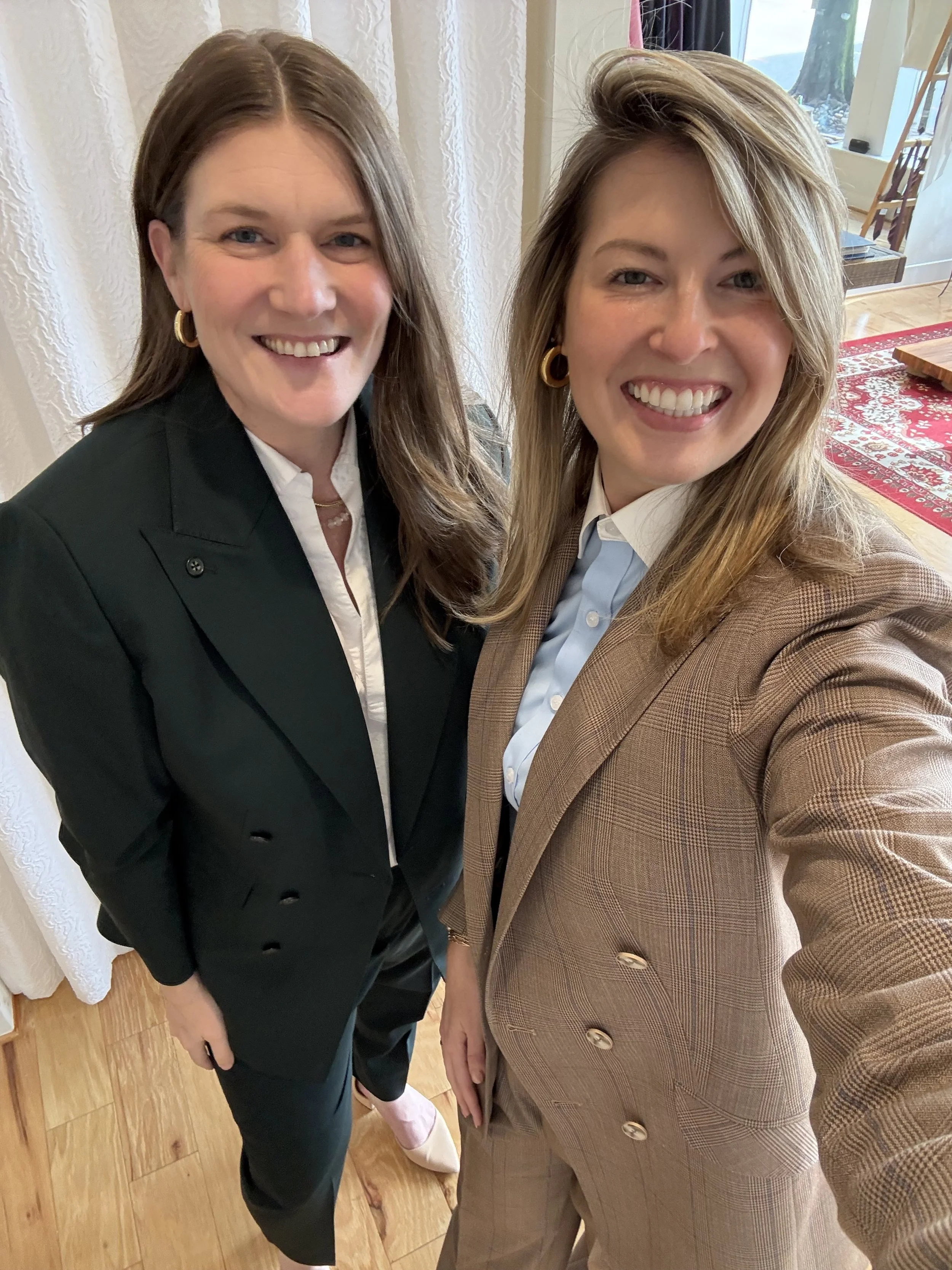 Wrapping up our review of our experience at Andre’ Julius here, and I can confirm Andre’ Julius: Pt 2 was as outstanding as Andre’ Julius: Pt 1. Our suits are STUNNING and fit like, well, extremely well-tailored suits. We worked with Andre’ throughout the design process to start, but I was still blown away by how fabulous everything turned out. I plan to wear mine for an upcoming panel I’m moderating, and I may need to plan for extra getting-dressed time, just so I can fawn over the lining, in partic, again.